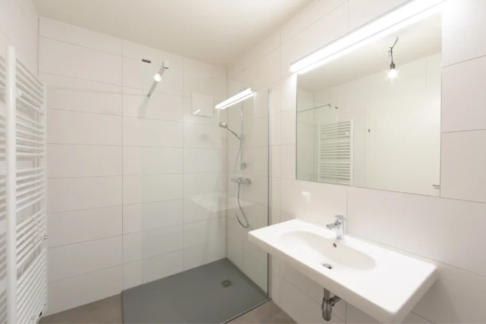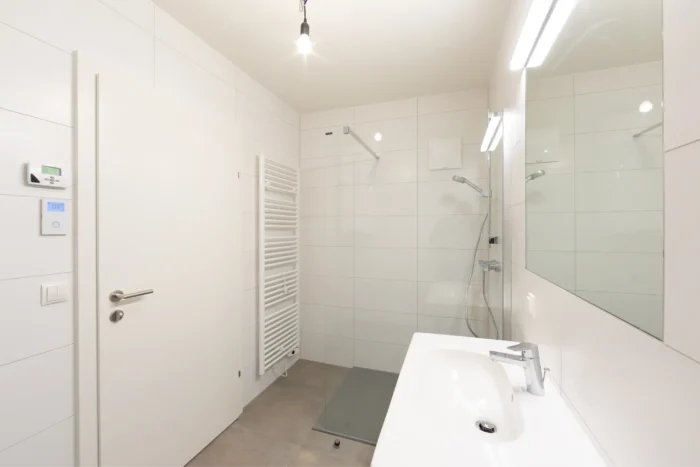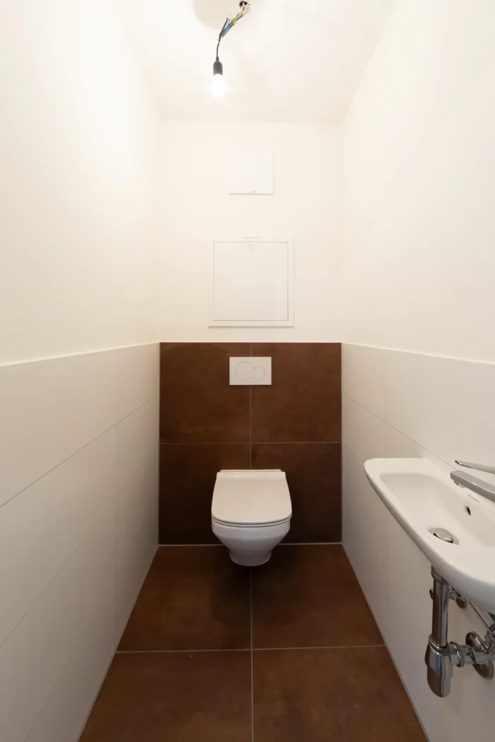 Die Wohnung verfügt über zwei Schlafzimmer, ein modernes Bad mit Dusche sowie eine separate Toilette. Ein praktischer 2,79 m² großer Abstellraum im Keller bietet zusätzlichen Stauraum.